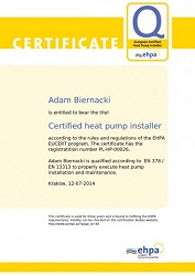 Wybierz Europejskiego Certyfikowanego Instalatora Pomp Ciepła PL-HP-00026
