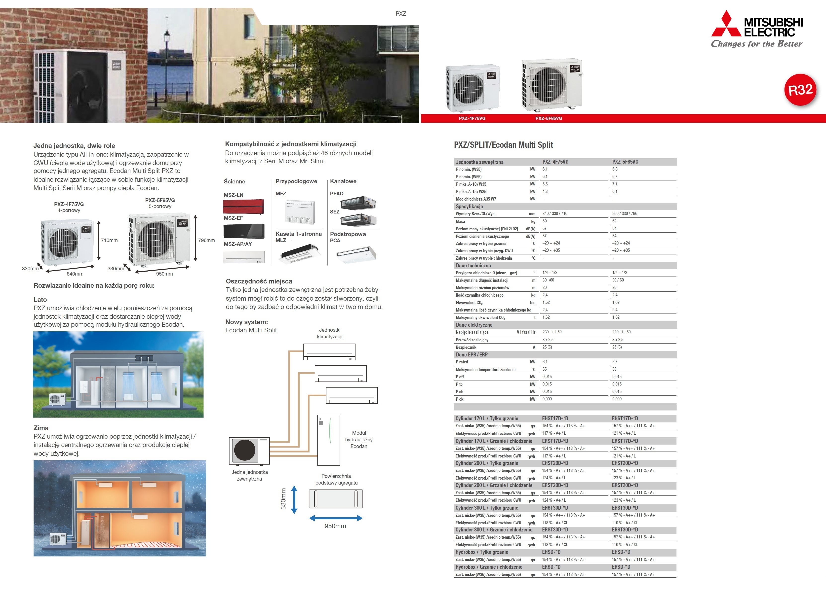 seria PXC Ecodan z wewnętrznymi jednostkami klimatyzacji: